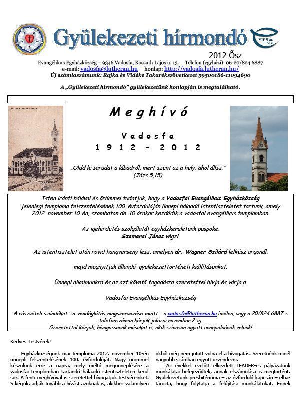 Ha van valakinek fényképe a hiányzó időszakok valamelyikéről, kérjük, juttassák el a lelkészi havatalba, vagy küldjék el beszkennelve, .jpg formátumban a vadosfa@lutheran.hu címre.